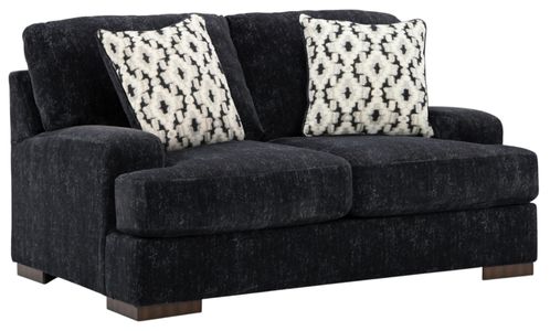 Invites relaxed lounging with its plush, reversible cushions and soft-back comfort. Its generous seating offers a cozy spot for two, while the neutral “Black Pearl” tone lends a subtle presence that blends well with many interiors. Toss pillows add a finished, inviting touch.Read More